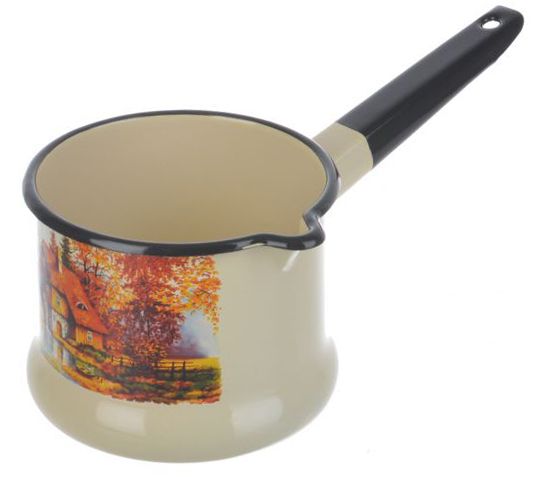 Ковш эм. 1л, с носиком, без крышки "Старая мельница" цвет слоновая кость