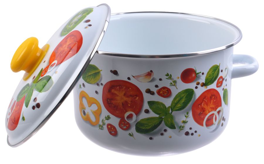 Кастрюля эм. 4л, эм. крышка с пласт. кнопкой, цилиндр с ободком "Каприче" белая(4)