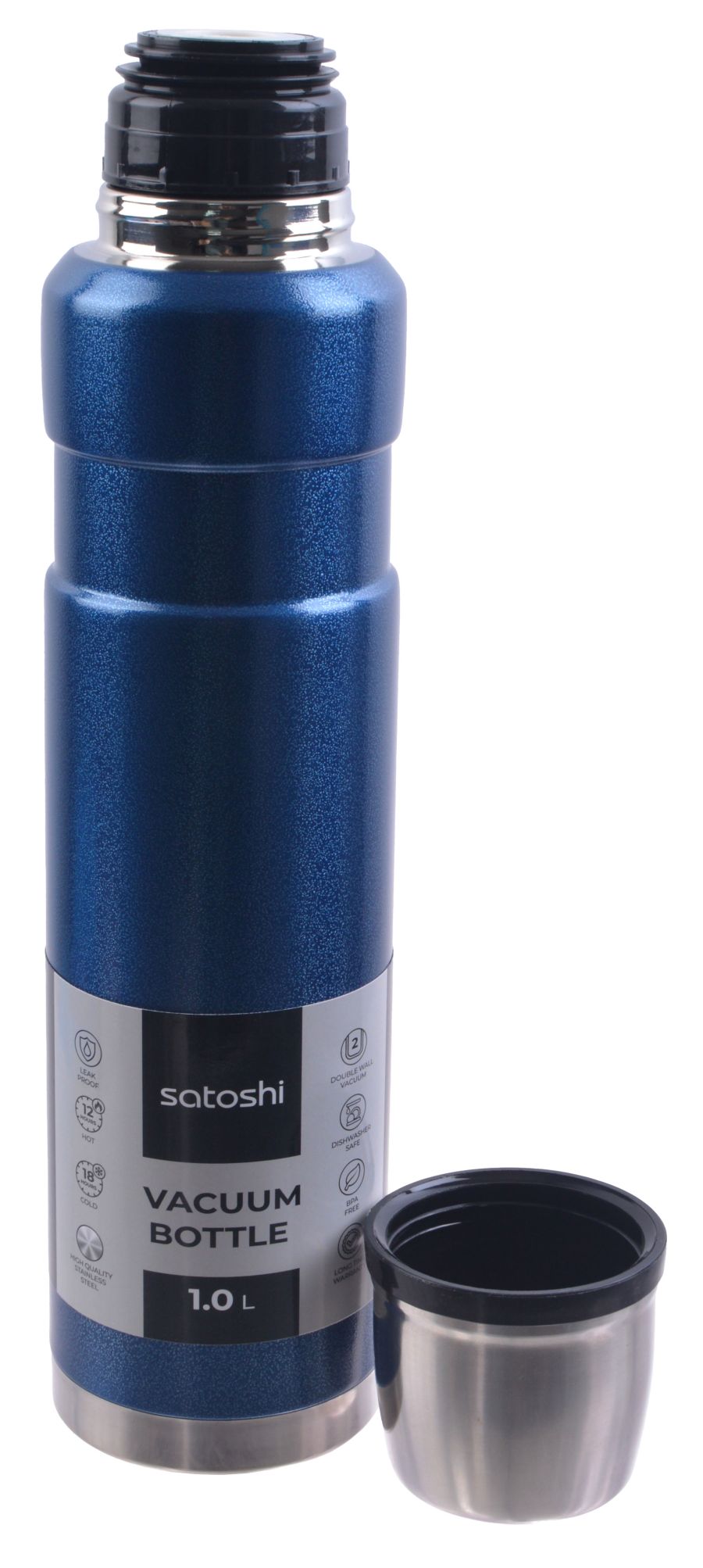 Термос нерж. 1л, узкое горло, крышка-чашка, пробка с кнопкой "SATOSHI "Торнадо" синий