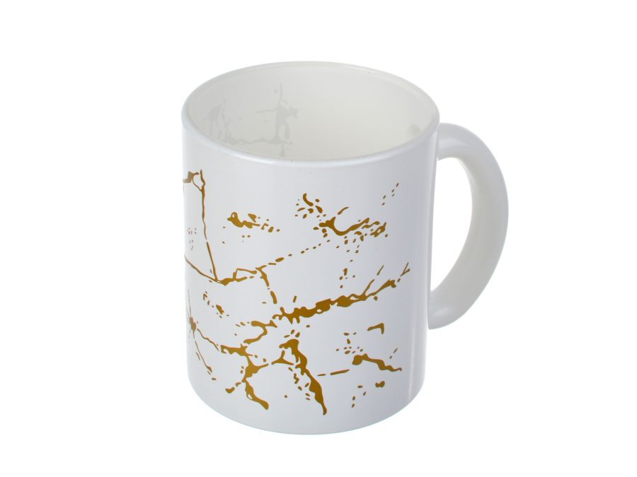 Кружка 300мл стекло "Мрамор" бело-золотая (24)