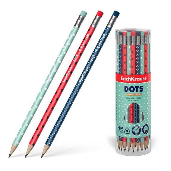 Карандаш ч/гр с ластиком EK "Dots" HB трехгран., тубус
