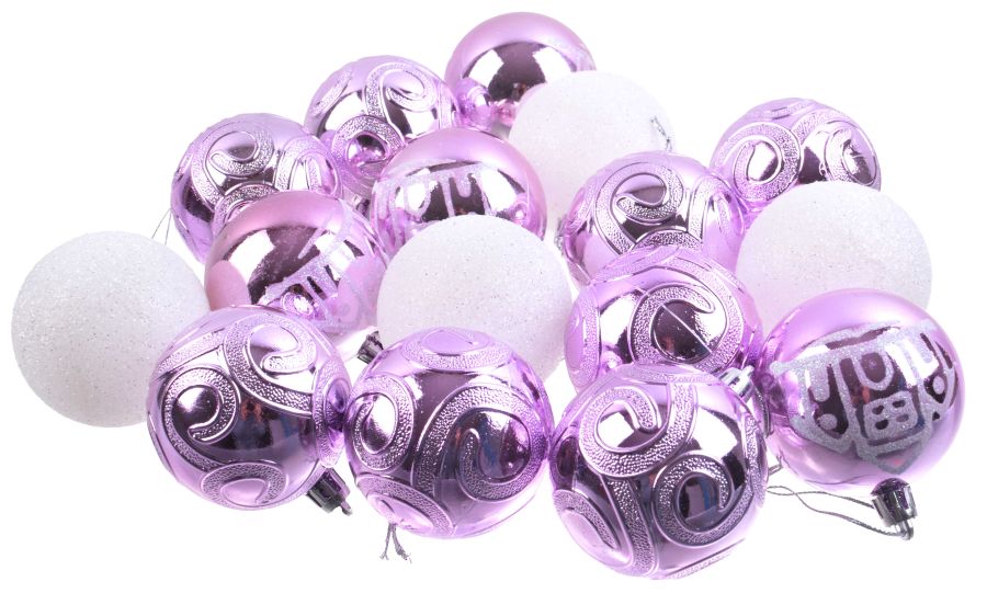 Елочное украшение Шар 6см 16шт сереневый+белый