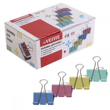 Зажим для бумаг 41мм deVENTE цв.металл асс.@