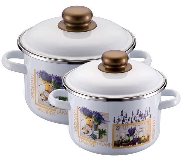Набор кастрюль эм. 2шт (2л (14см); 3л (16см)), эм. крышки индукция "Linea LAVANDA" белоснежная