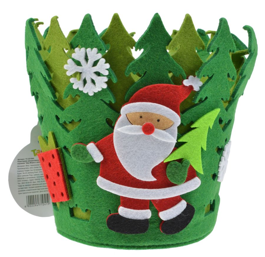 Корзинка фетр 18см новогодняя зеленая "Дед Мороз с елкой"