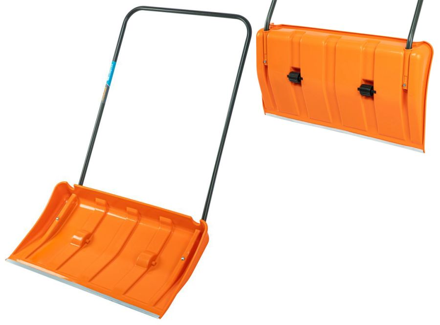 Движок для снега (скрепер) пласт. 795*435*1280мм, НА КОЛЕСАХ, сталь рукоятка, ал. планка