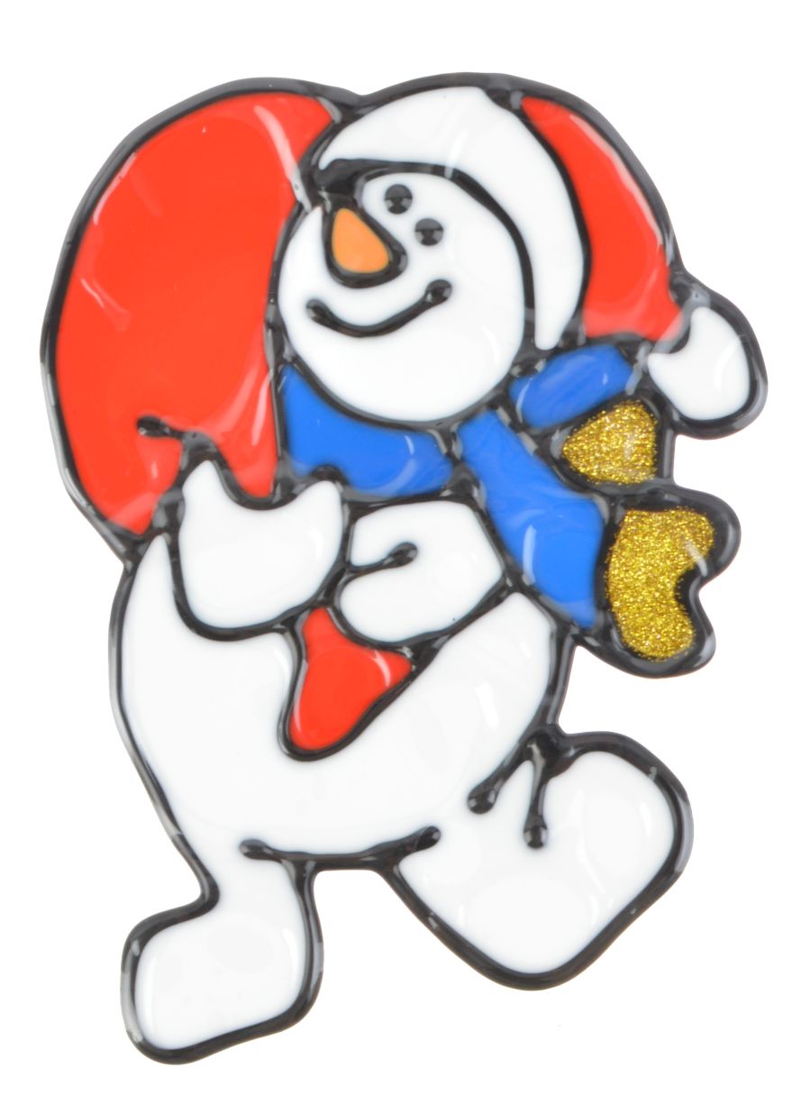 Наклейка на стекло 12см силикон Снеговик с мешком
