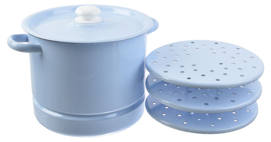 Мантоварка эм. 9л, 3 секции, эм. крышка, пласт. кнопка "Позница" серо-голубая