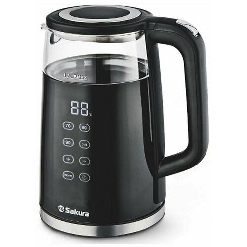 Чайник эл. 1,7л 1850-2200Вт стекло двухслойн.4режима LED дисплей,сенсор Premium"SAKURA" черный (12)