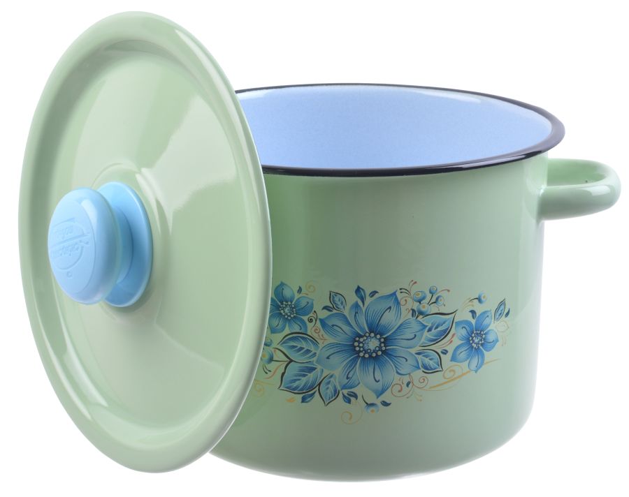 Кастрюля эм. 3,5л, эм. крышка с пласт. кнопкой, цилинд салатовая (4)