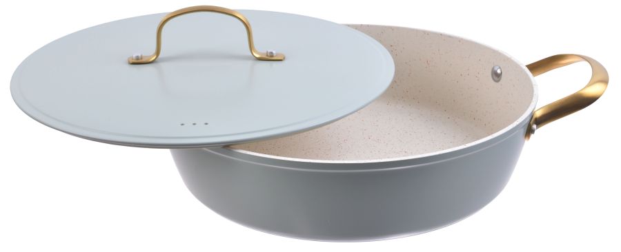 Сотейник ал. 280мм (h72мм), ал. крышка ручки под золото мраморное а/п индукция "NICOLE" голубой (6)
