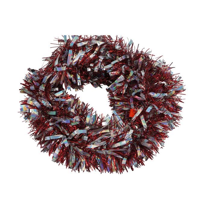 Мишура 2м тонкая+широкая двухцветная Красная+серебро@