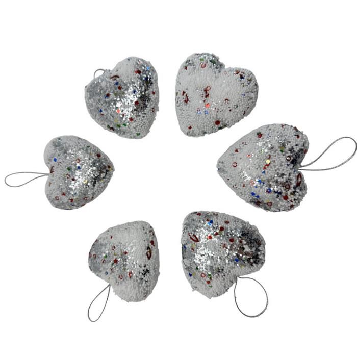 Елочное украшение Сердце 6см Серебро с белыми шариками 6шт 144-20104