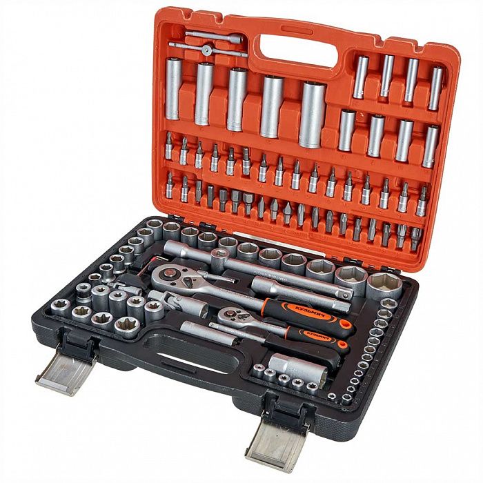 Набор инструментов 108пр (ключи,головки,трещотки,воротки,удлинители) в кейсе "КУЗЬМИЧ"