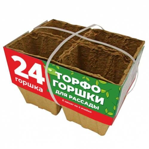 Горшок для рассады торфяной 6*8см, НАБОР 24шт (6 кассет по 4 ячейки)