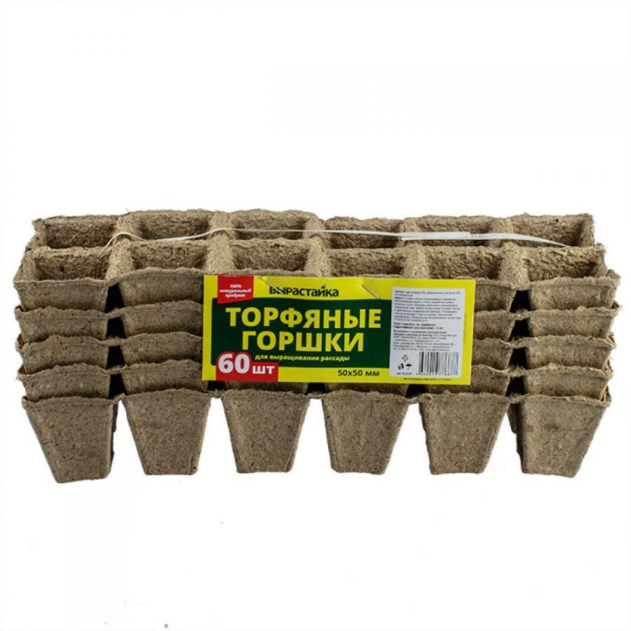 Горшок для рассады торфяной 5*5см, НАБОР 60шт (5 кассет по 12 ячеек) "Вырастайка"