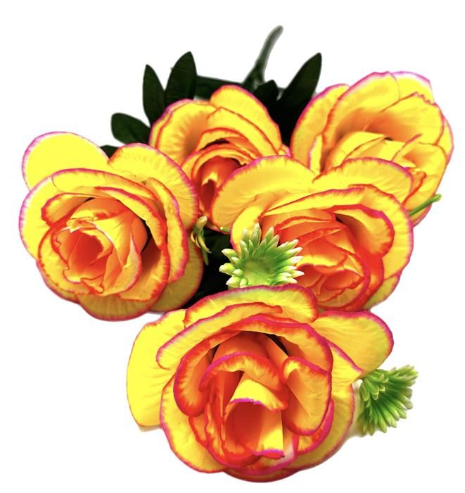 Цветы искусственные Букет Роза 5шт 49см желтая с роз.краем 24-R9-2@