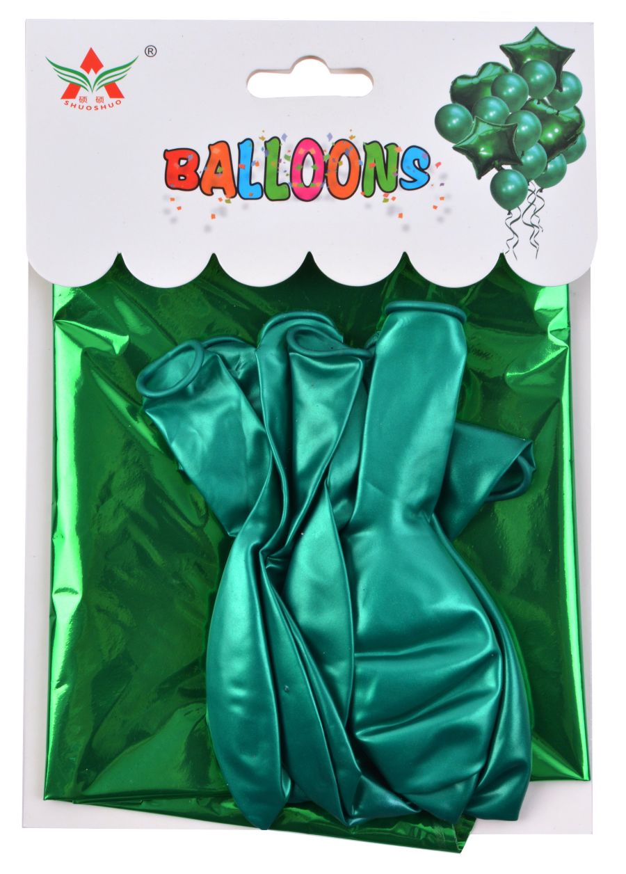Шары воздушные (надувные) 14шт (4шт фольгир.+10шт перламут.) зеленые