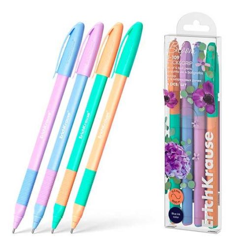 Набор масл. шар. ручек 4шт. EK Ultra Glide Technology U-109 "Stick&Grip Pastel Bloom" синий,1