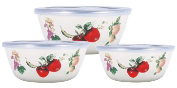 Набор мисок (салатников) эм. 3шт (0,85л (16см), 1,7л (18см), 2,6л (20см)), с крышками "Fruits"