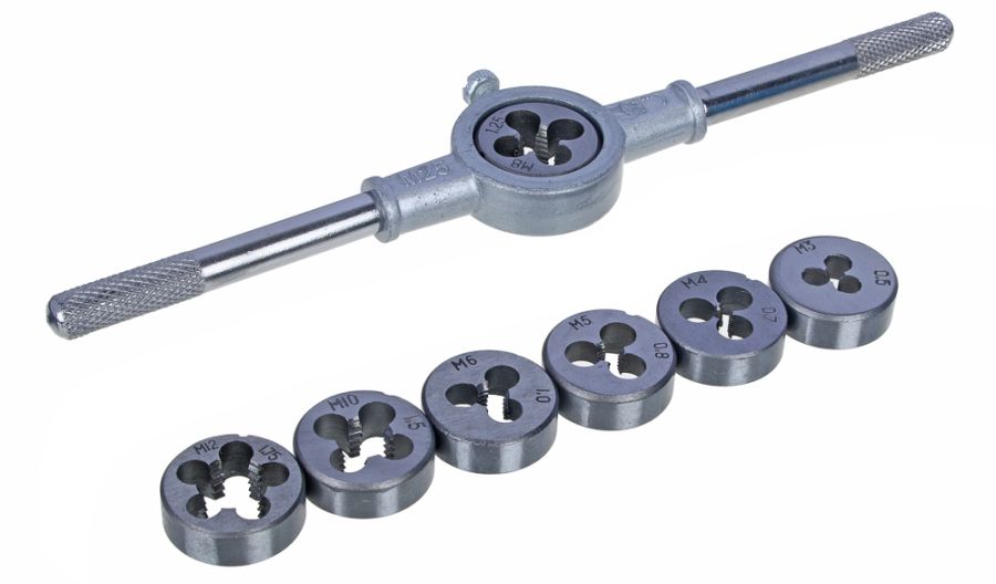 Набор инструментов 8пр (плашки 7шт, плашкодержатель) на блистере М3-М12 "ЕРМАК"