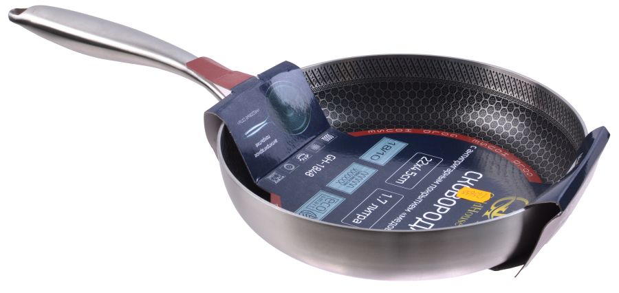 Сковорода нерж. 220мм, без крышки, сотовое а/п "Hybrid Non-stick", нерж. ручка