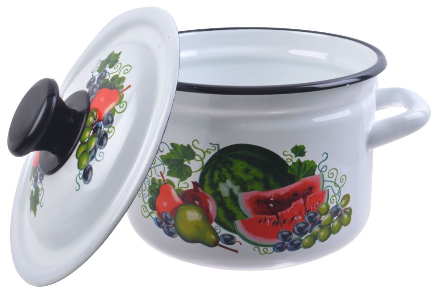 Кастрюля эм. 2л, эм. крышка с пласт. кнопкой, цилиндр борт, белая "Восточные дары" (4)