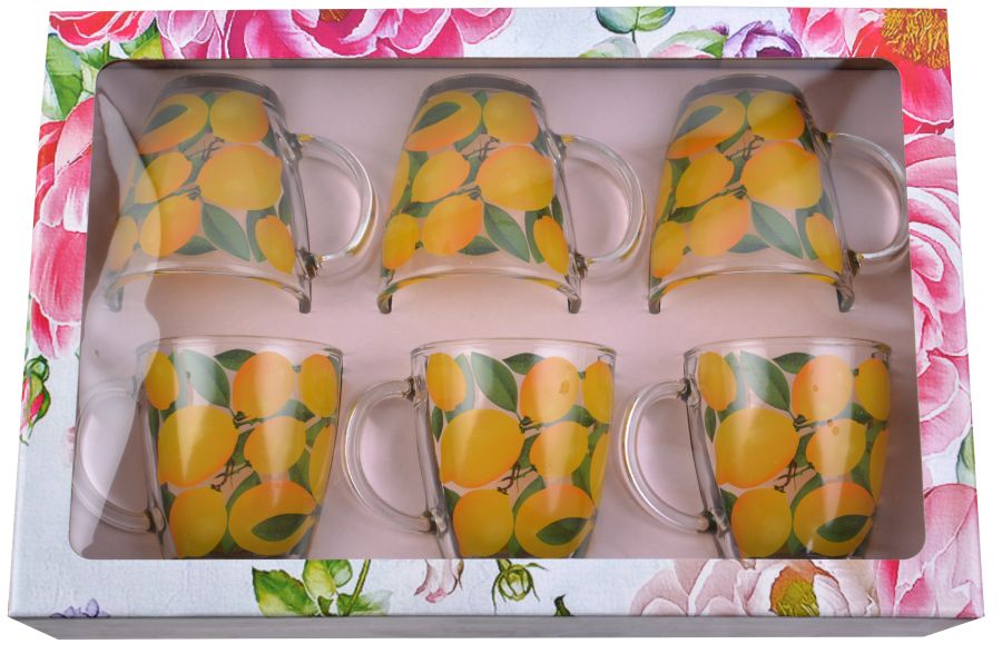 Набор кружек 350мл 6шт стекло "Лимоны"