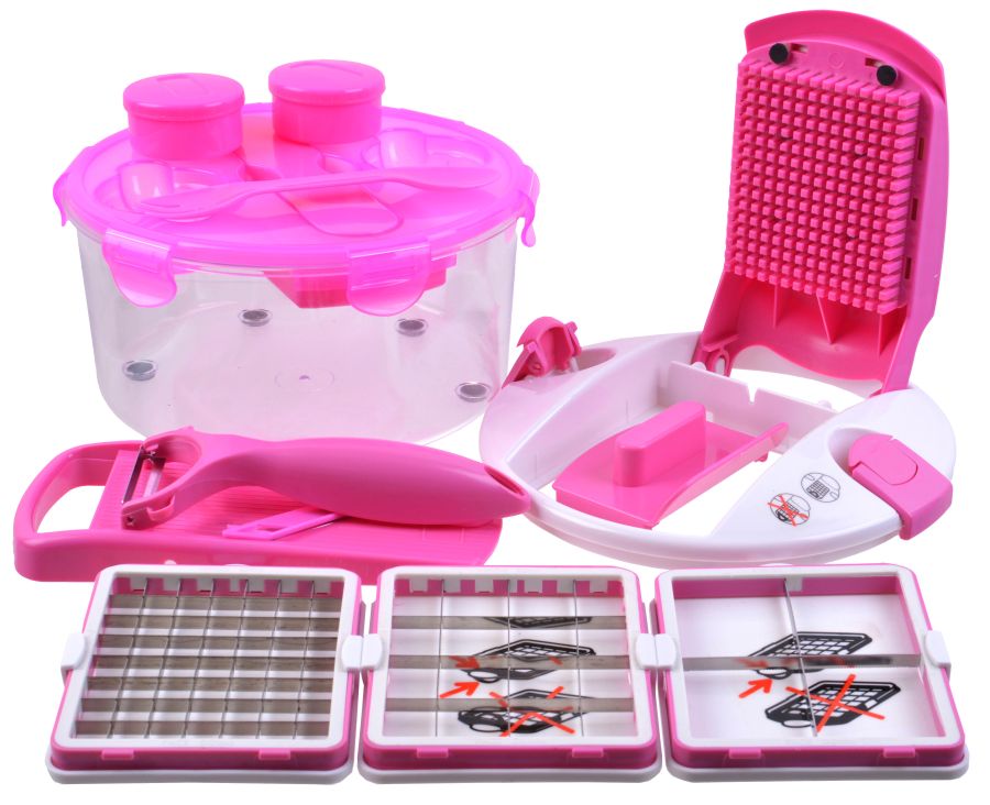 Овощерезка пласт., чаша 1,5л, 6 насадок, овощечистка, держатель, пласт.крышка "Salad Chef Smart"