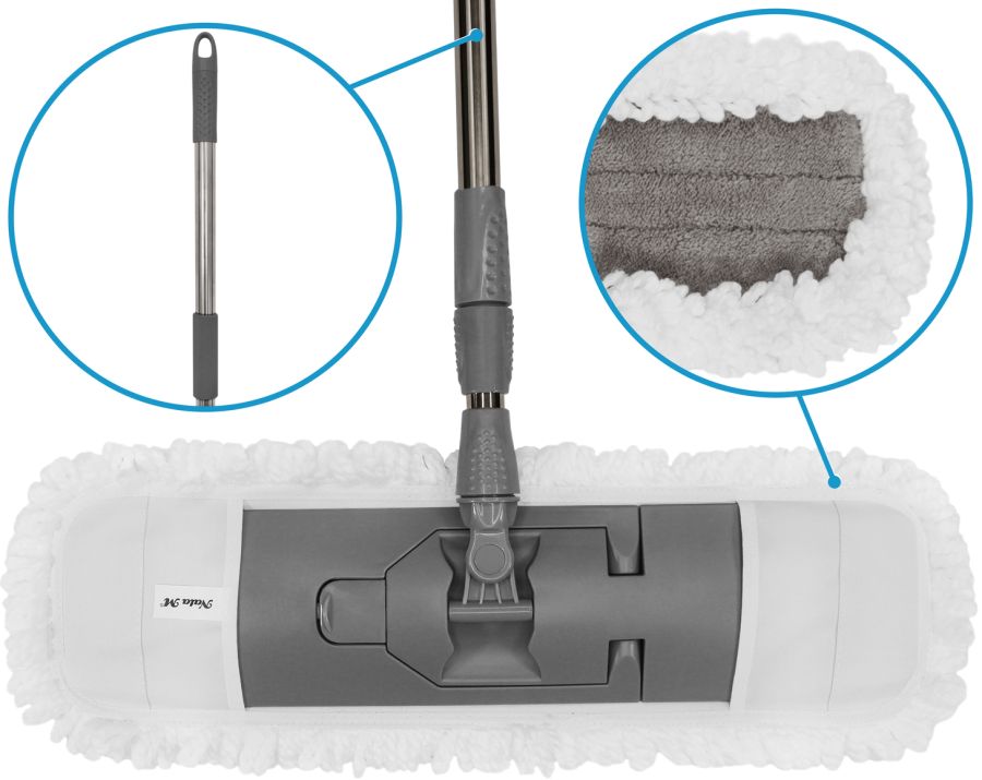 Швабра для пола с насадкой из микрофибры 58*18см, телескопический черенок 89-140см, "NataM" серая