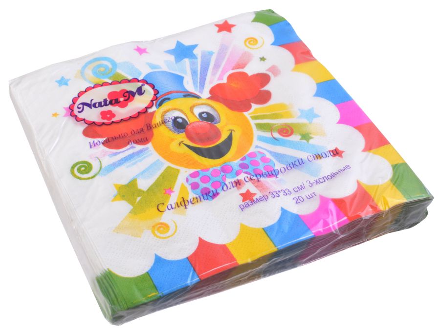 Салфетки бумажные 20шт 33*33см 3х-слойные "Веселый клоун"