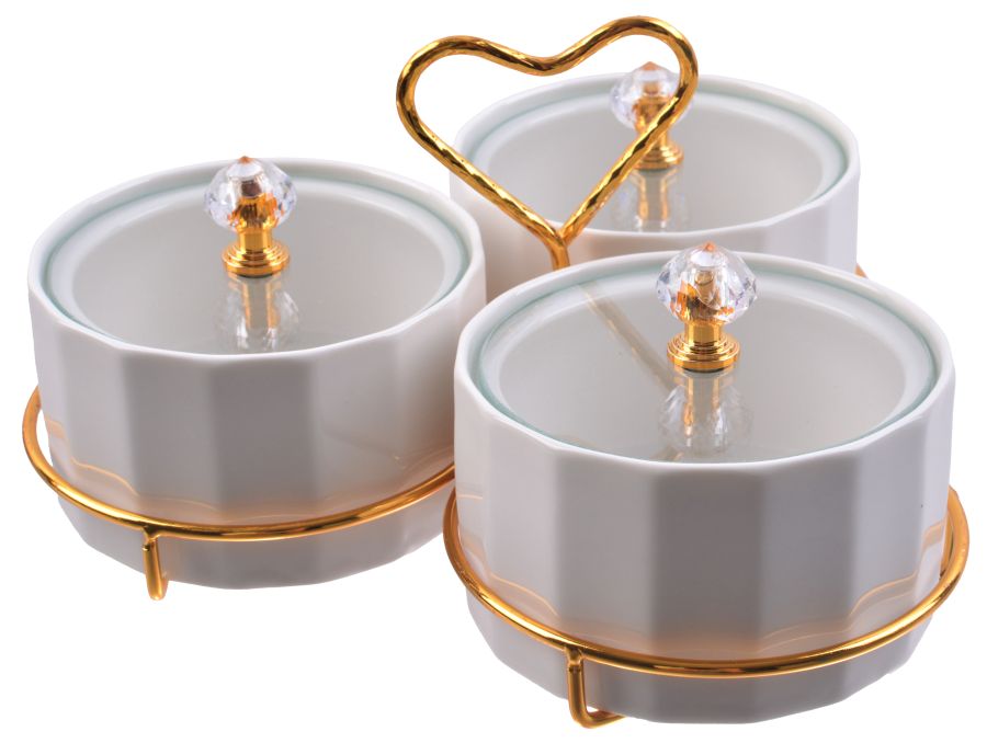 Набор блюд 3шт фарфор, на мет. подставке, с крышками, в под. упаковке