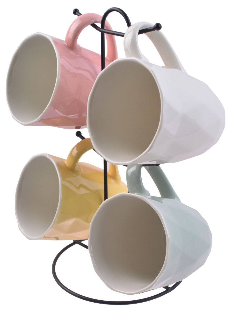 Набор кружек 4шт 380мл керамика на мет. подставке (6)