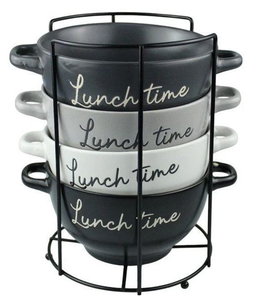 Набор бульонниц 4шт 650мл "Время ланча" керамика на мет. подставке (6)
