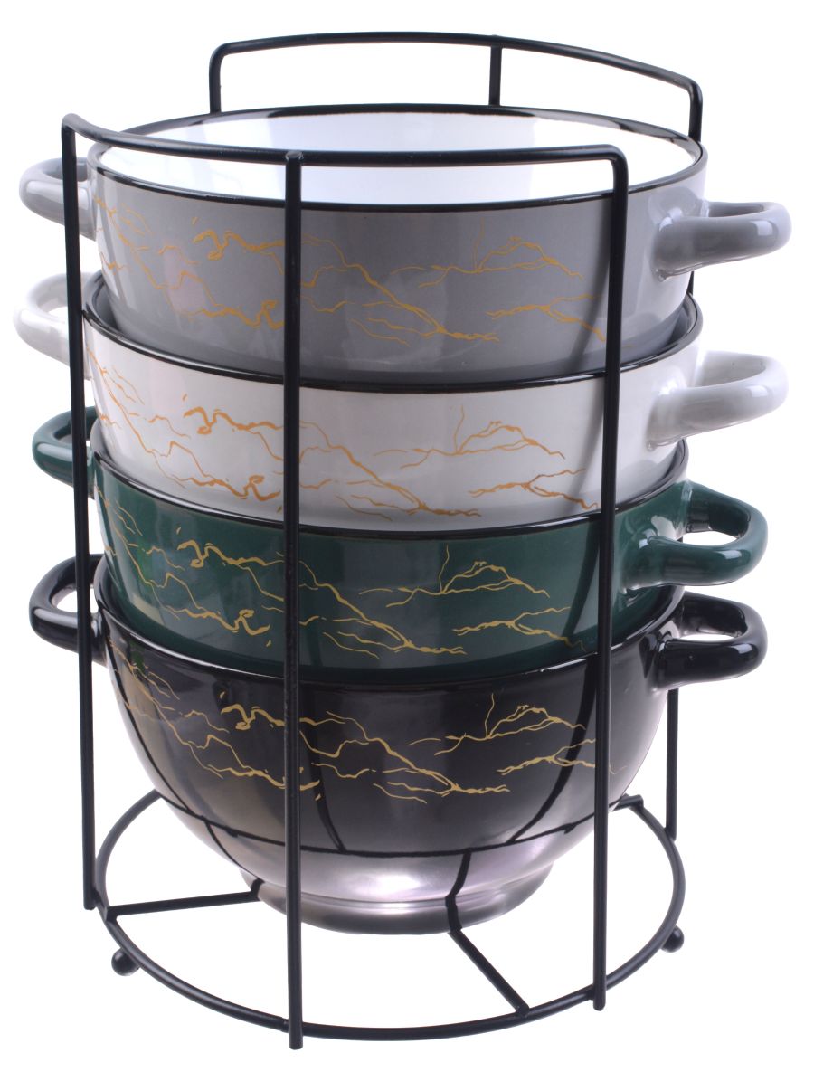 Набор бульонниц 4шт 650мл "Монако" керамика на мет. подставке (6)