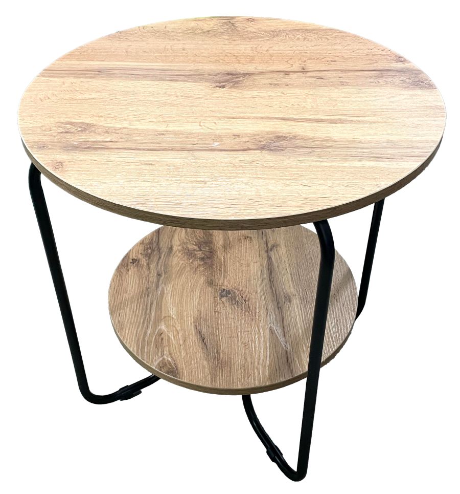 Столик журнальный (металл.+ЛДСП) двухуровневый круглый (верх 58см, низ 44см, выс.59см) Дуб Вотан