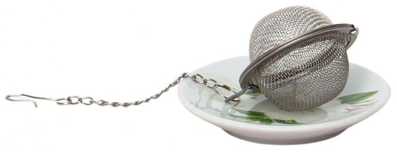 Ситечко для чая нерж., с подставкой для чайного пакетика керамика "Магнолия"
