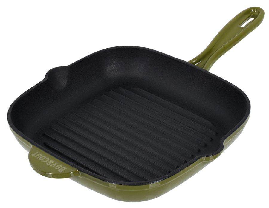Сковорода-гриль чугун 240*240мм, квадратная, эм. покрытие снаружи, а/п "BOYSCOUT" зеленая