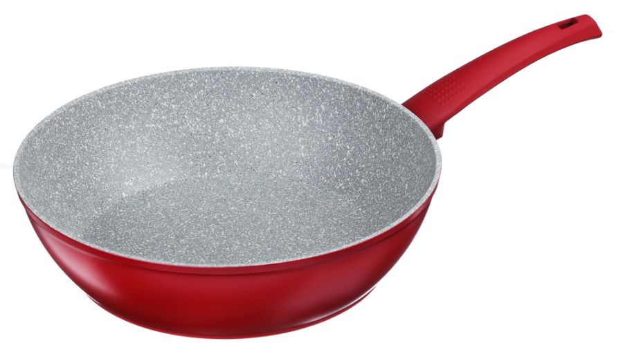 Сковорода ал. 280мм, красная бакелит. ручка, серое а/п, индукция "SATOSHI "Верден" красная