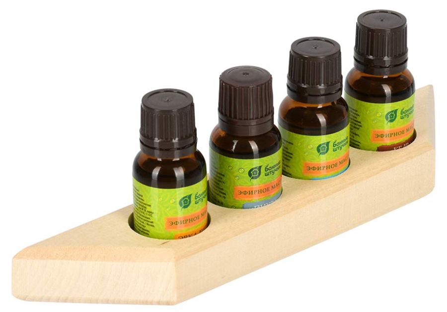 Масло для бани, Набор 4шт*15мл (эвкалипт, пихта, кедр, мята) "Дыхание леса", на дер. полочке