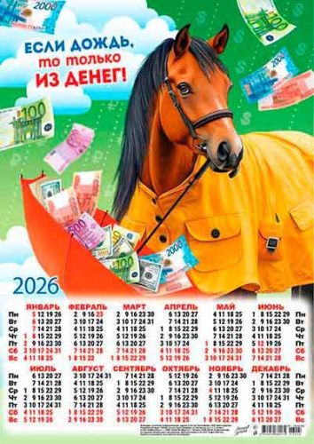 Календарь настенный листовой А2 2026г. ЛИС "Символ года. Дождь из денег", мел.бум., 80гр/м2