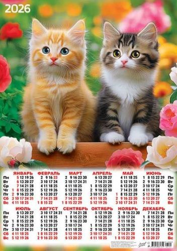 Календарь настенный листовой А2 2026г. ЛИС "Кошки. Братишки" ПО-26-102, мел.бум., 80гр/м2