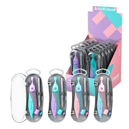 Циркуль 122мм EK "Pastel" с карандашом, пластик., пенал, цвет микс