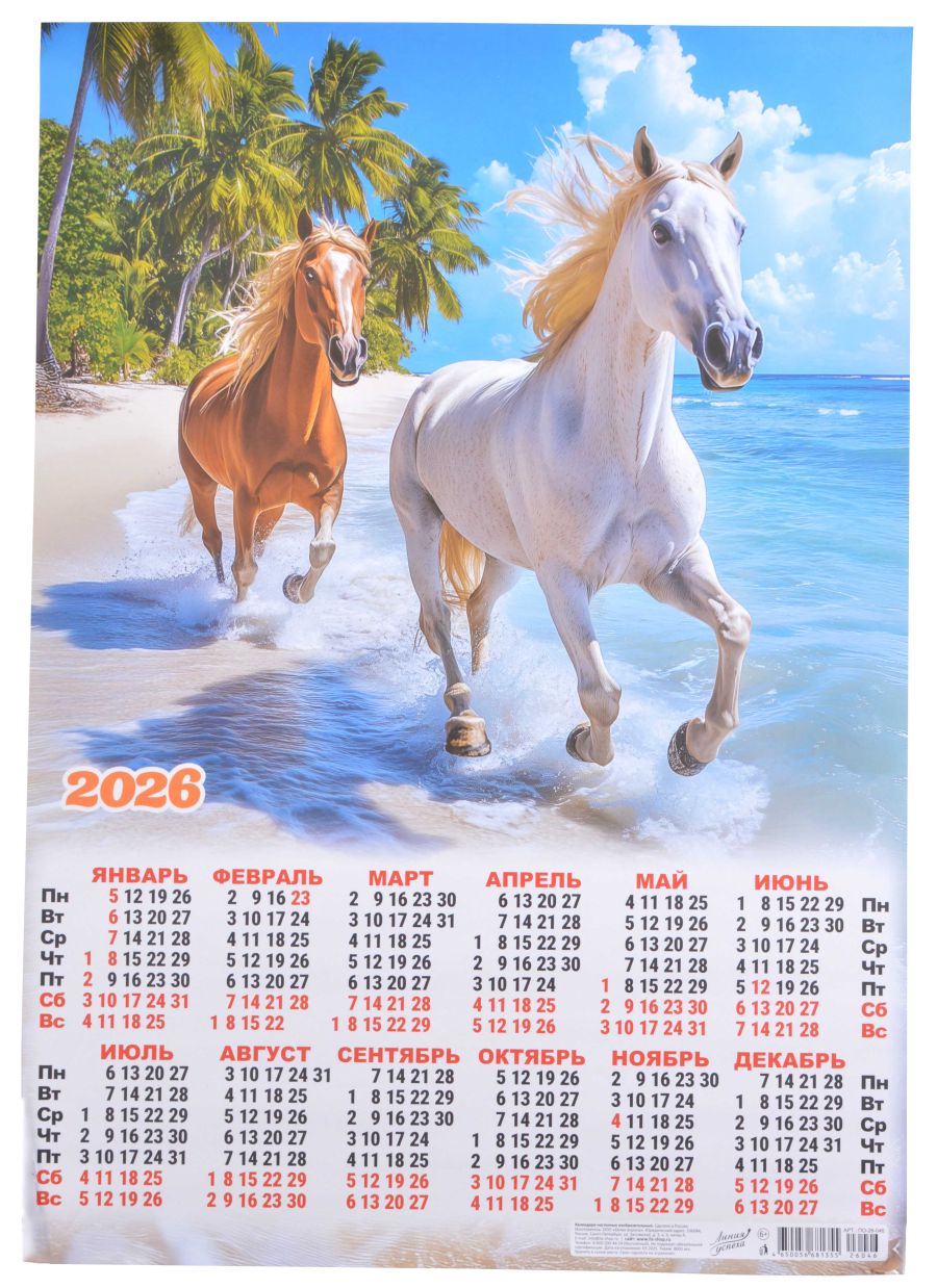 Календарь настенный листовой А2 2026г. ЛИС "Символ года. Заслуженный отдых", мел.бум., 80гр/м2