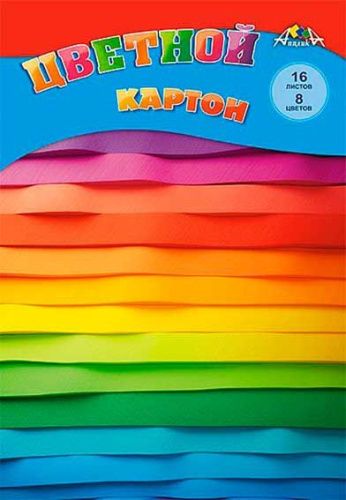 Картон цв. А4 16л. 8цв. АППЛИКА "Яркие полоски" в папке