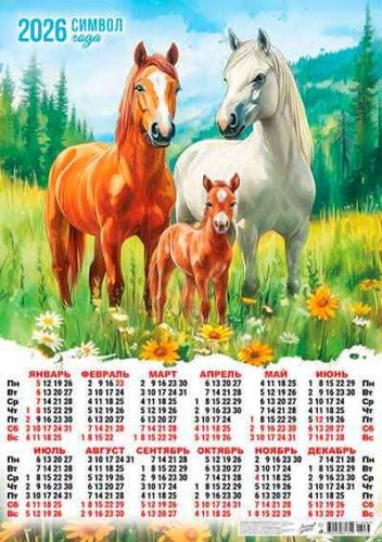 Календарь настенный листовой А2 2026г. ЛИС "Символ года. Доброе семейство", мел.бум., 80гр/м2