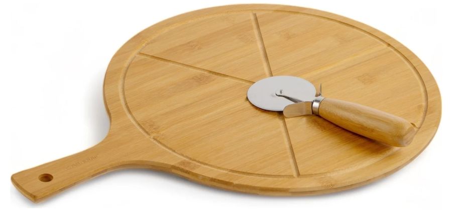 Набор 2пр доска для пиццы дер. 35см с ручкой и нож для пиццы нерж., дер. ручка "PIZZAIOLO"