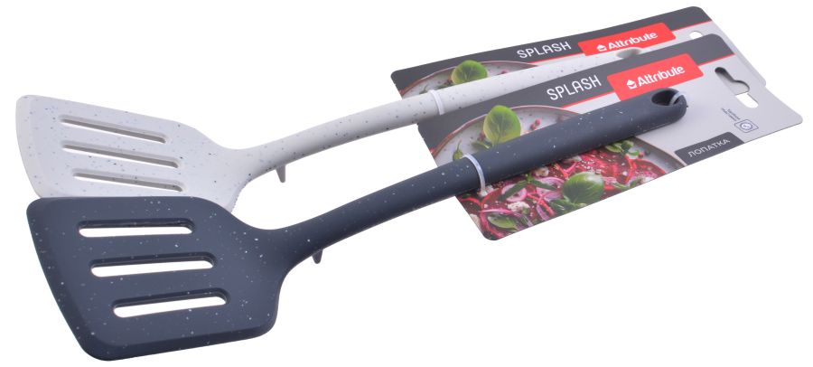 Лопатка кулинарная силикон 30см, на подставке, с прорезями, силикон. ручка "Attribute "SPLASH"