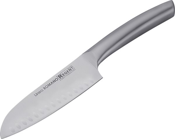 Нож кухонный нерж. 12,5см (L245мм с ручкой) (сантоку), литой, нерж. ручка "Regent "ROMANO"