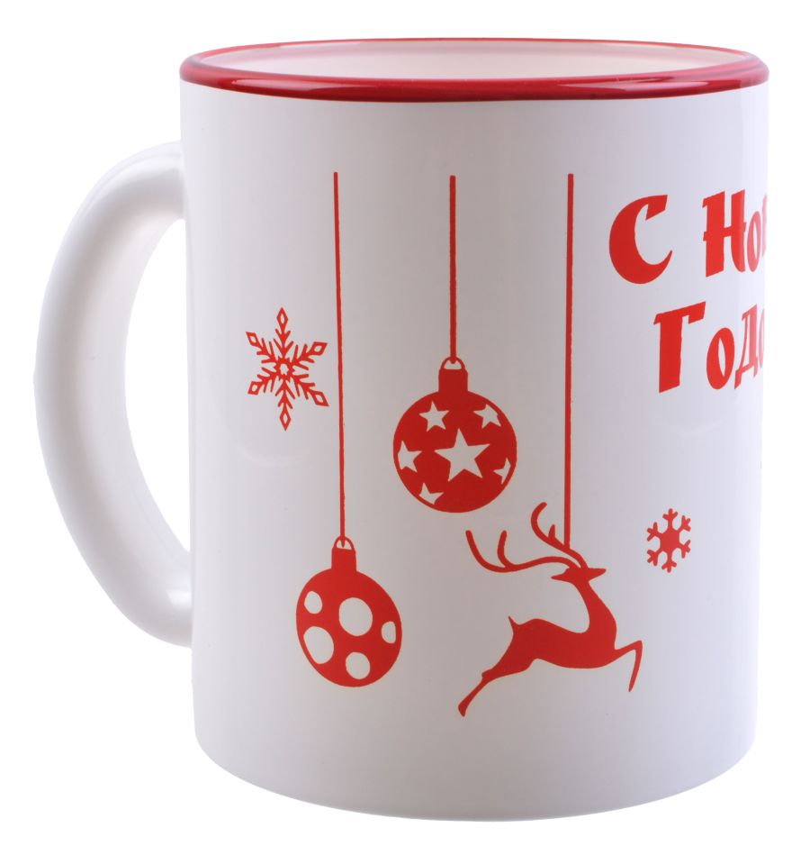 Кружка 300мл стекло "С Новым Годом!" бело-красная, в подарочной упаковке (12)